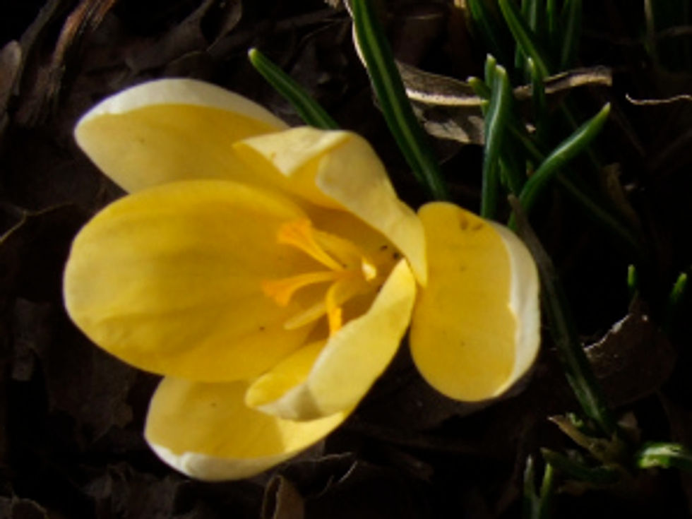 A tiny creamy yellow crocus is blooming on the east side of the house, my first flower. Daffodil spears are up and starting to form buds, and I found some red peony tips just emerging. Snowdrops will be blooming soon, too.
